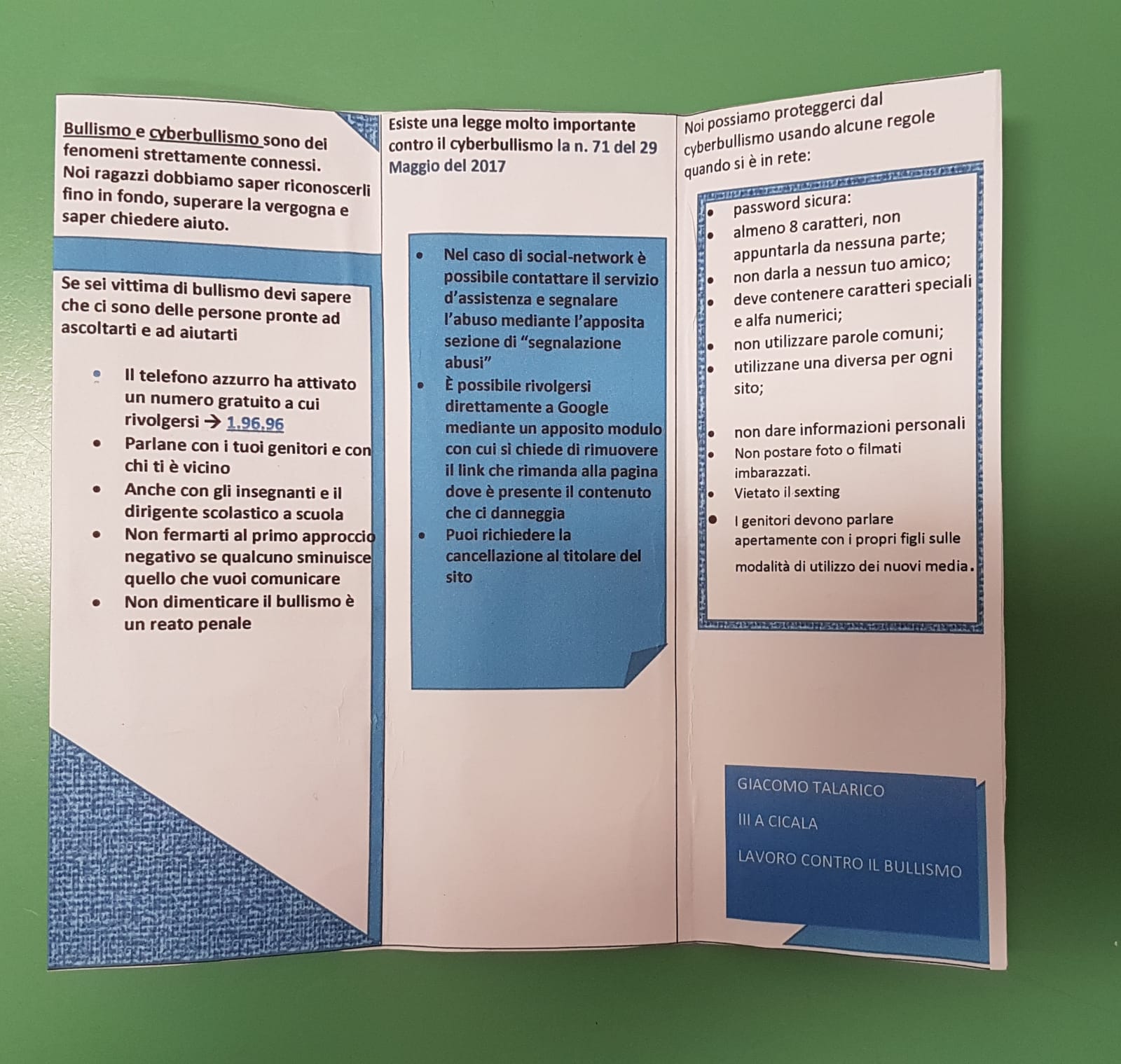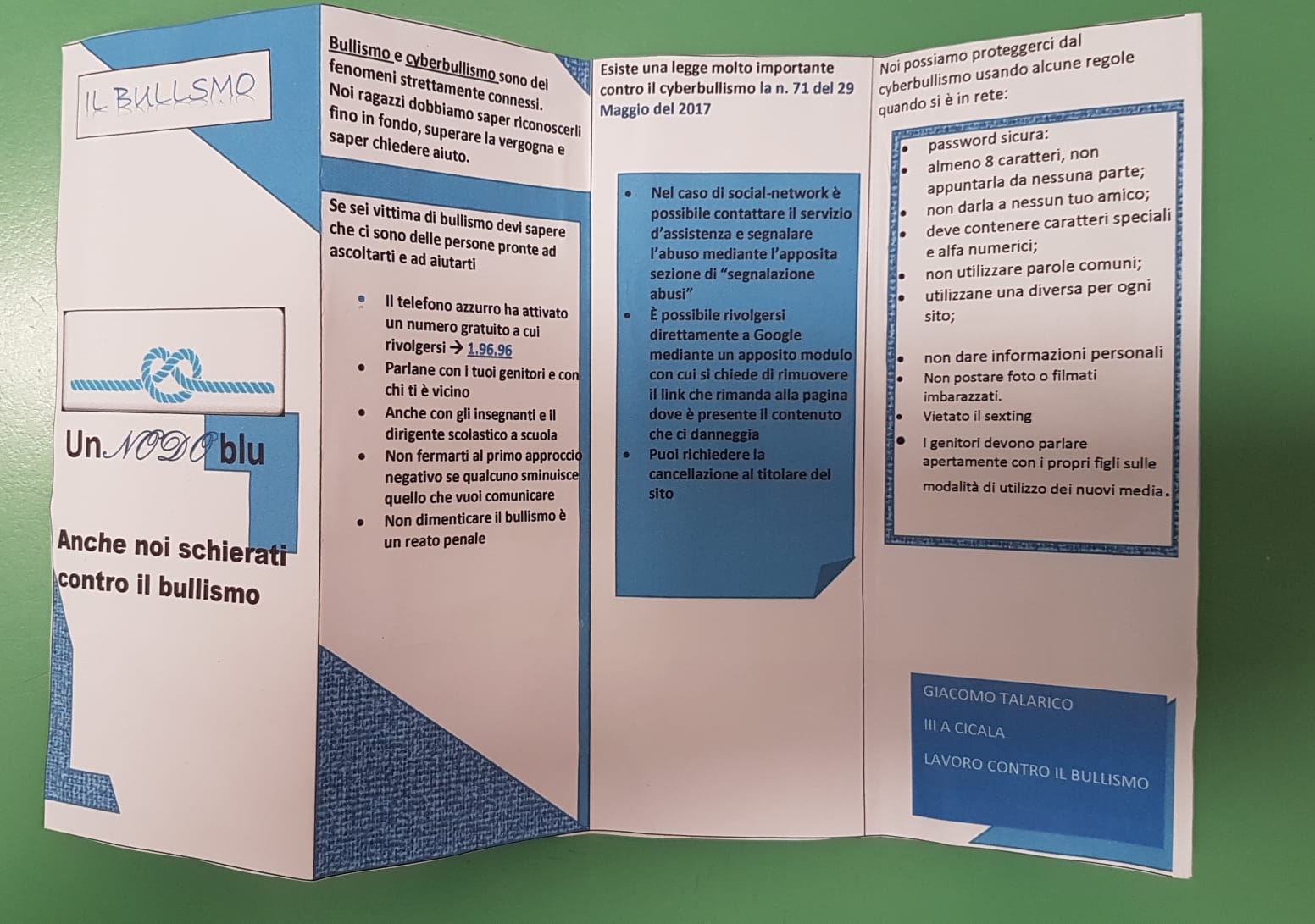 Nei giorni 08 e del 09 febbraio 2021, in occasione della giornata contro il bullismo e cyberbullismo, gli alunni del nostro Istituto Comprensivo si sono cimentati in percorsi di sensibilizzazione e approfondimento di tali tematiche realizzando lavori davvero apprezzabili. Alcuni di essi sono pubblicati di seguito e in allegato.